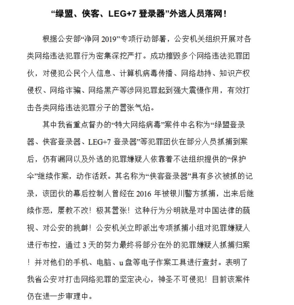 “绿盟、侠客、LEG+7登录器”外逃人员落网!