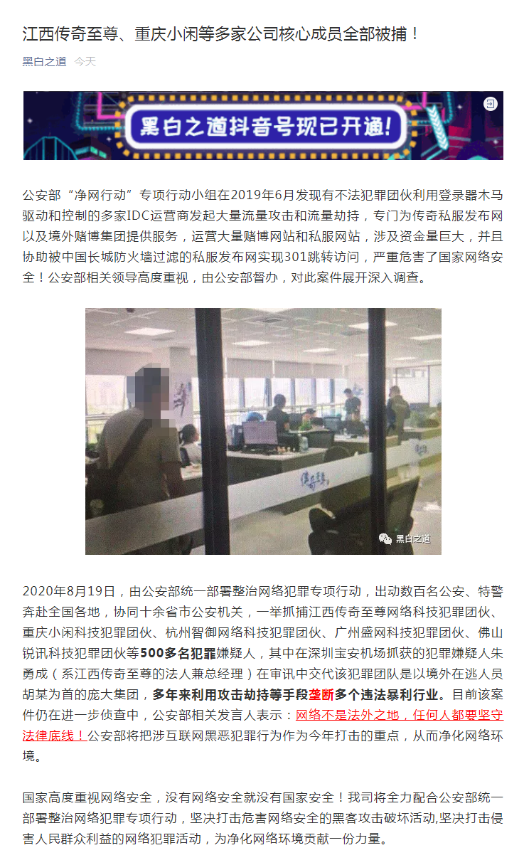 江西传奇至尊、重庆小闲等多家公司核心成员全部被捕!